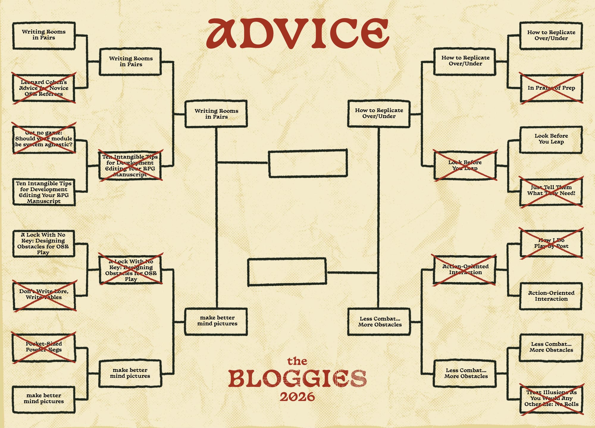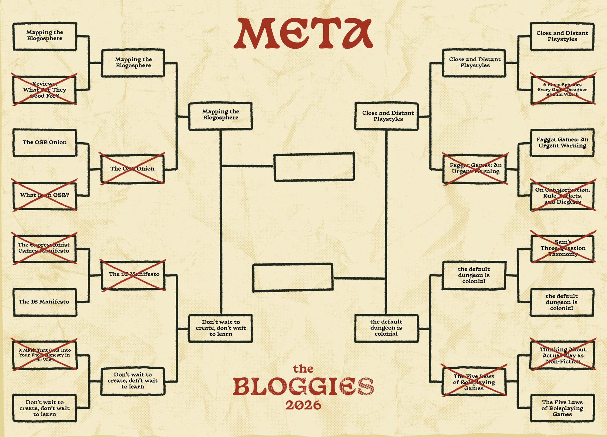 That's everything for Round 2. If you're reading this, that means round 3 is already underway. You can find the latest news, standings, and voting at this year's Bloggies homepage.