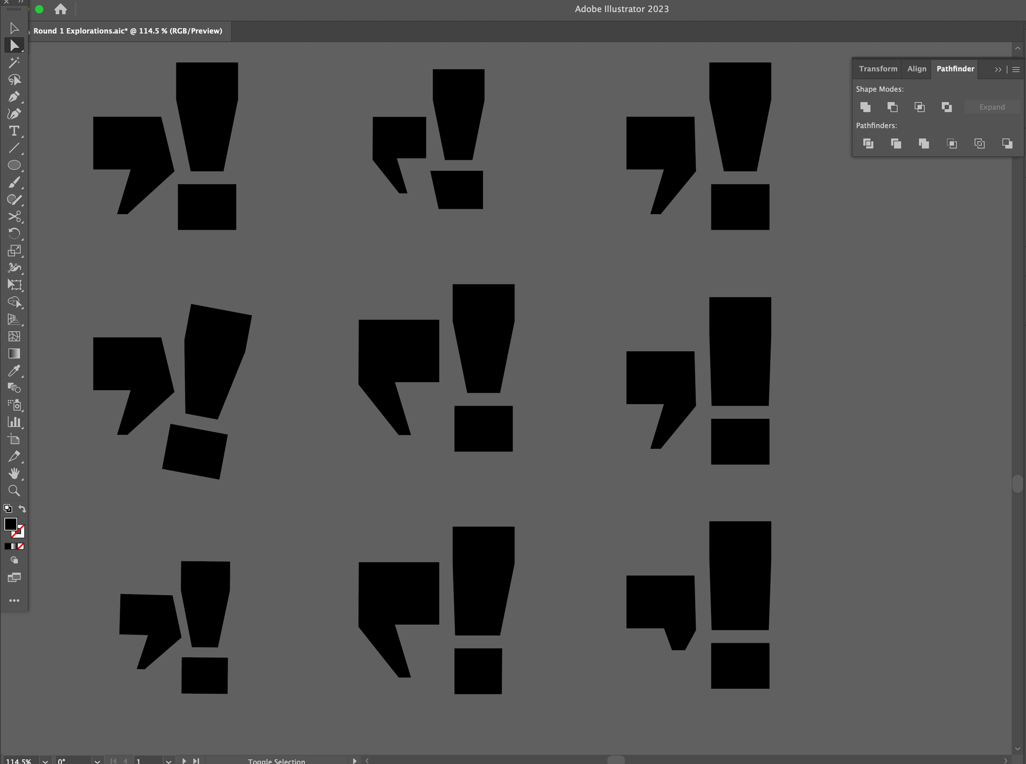 As you might have noticed, the type did end up giving me quite a few ideas about what the symbol or "logomark" could be. In direction 1, I realized the comma and exclamation park in the name were remarkable enough to be an actual mark. In the second direction, I decided the revelry could be represented by a speech bubble. In this case, the speech bubble is made using the same geometry and angles as the wordmark!