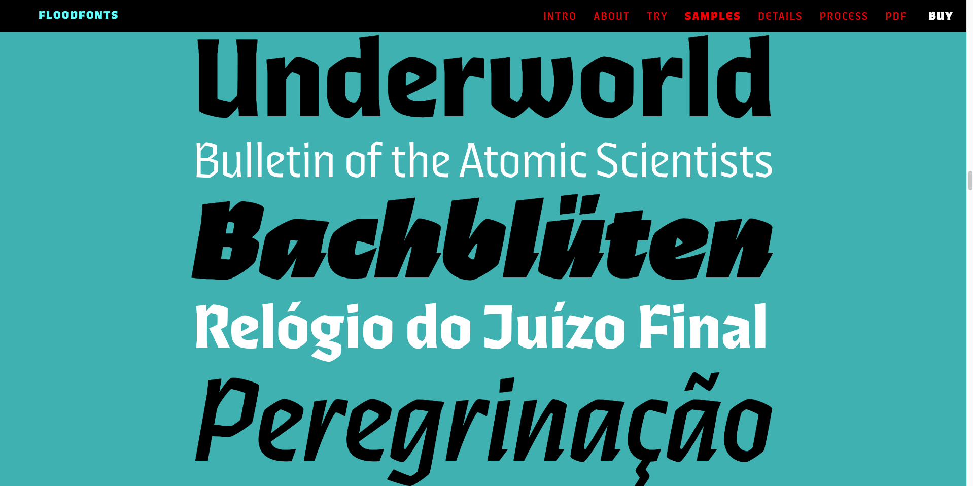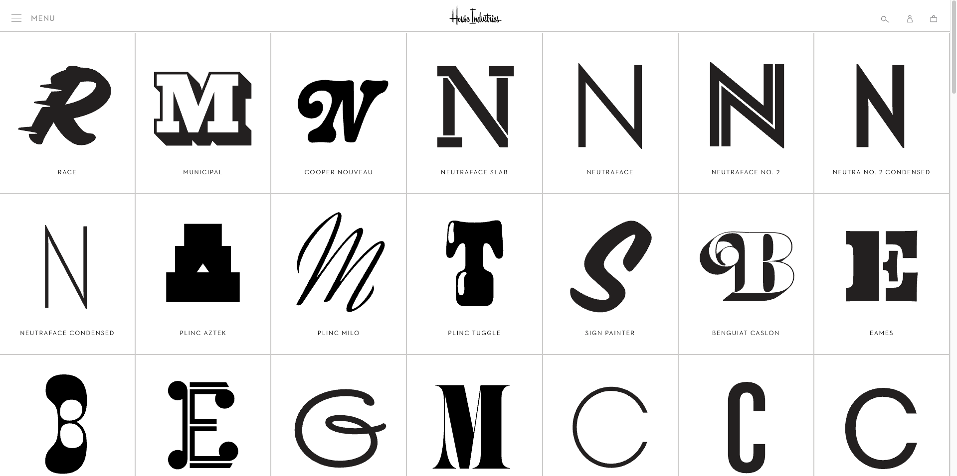 Type explorations (clockwise from top left), BN Nickerson Studio, Floodfont's Ferryman, House Industries, and Mans Grebäck.