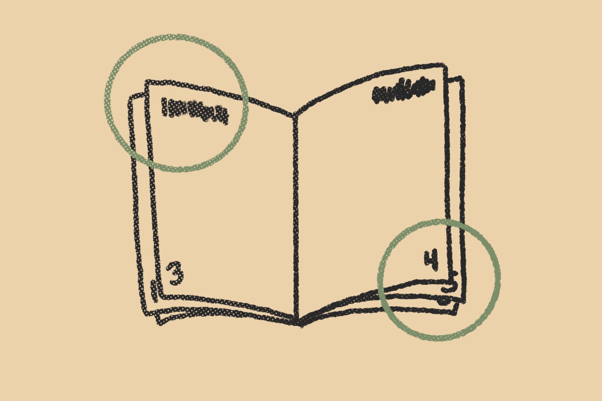 If you have a recurring signal at the edge of your page, like a color bar, you can extend it into the bleed to create a colored edge along the trim. This colored edge, when layered on top of others, creates a three-dimensional signal that readers can thumb through without ever opening the book. Don't know what bleed is? I got good news. There's an article for it.